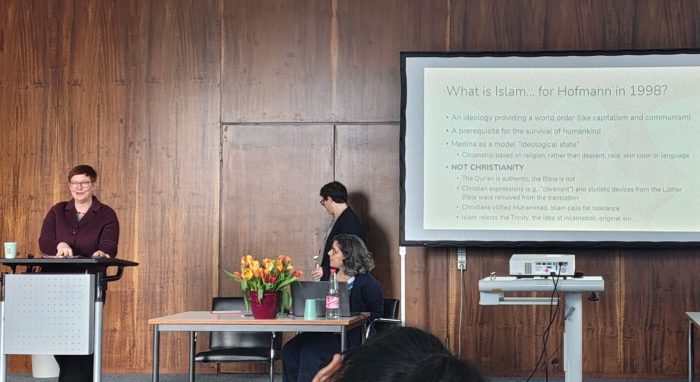 The day was concluded with a round table, moderated by Bekim Agai, with Jewish-Studies anthropologist Yulia Egorova (Durham University), the imam and PhD candidate Ensar Sinani (Universität Hamburg), and three historians of Islam: Antonia Bosanquet (Utrecht University), Florian Zemmin (Frei Universität Berlin) and Muhammad Al-Atawneh (Ben-Gurion2 University in Israel). The discussion, involving the participants and the committed audience, highlighted the gaps in communication between the disciplines on the one hand, and the potential of bridging it through a contextual examination, on the other.